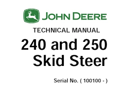 John Deere 250 240 Service Technical Manual. TECHNICAL MANUAL Litho in the U.S.A John Deere Commercial Worksite Products 240 and 250 Skid Steer Serial No. ( 100100 - ) TM1747 (Nov00) Replaces TM1747 240 and 250 Skid Steer. This technical manual is written for an experienced technician and contains sections that are specifically for this product.
