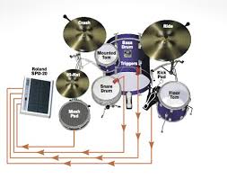 Drum set setup diagram. There are 7 main components that should be on any beginner's home recording studio list. These are the key essentials needed to make good quality recordings at home. But you don't need them all at once! You can build up step by step and what you choose to buy for your own home studio recording will depend on what you want to achieve. Connecting outboard gear. The way to set up and connect outboard gear depends on the application. For example, preamplifiers bring microphone or instrument levels up to professional line level (commonly known as +4), so they are most often used as the first step in the tracking signal chain.Compressors and equalizers can be used either during tracking or afterward as a DAW hardware insert. Bass drum miked outside: using two out-of-phase mics in front of the bass drum will capture the ambient sound of the front head ... both set equidistant from the snare and bass drum, will give a fuller sound than with the mics above the kit. ... 11. Room miking behind the kit: the four-mic set-up. If recording in a nice-sounding room and you ... The phone is playing stereo sound with the splitter cable [2]* separating the track: click in the left channel and track in the right channel. (I use stereo headphone extenders to deal with cable length issues live [3]* ). The left channel goes into the mixer (channel 2/3) and right channel goes into the input on your DI box.