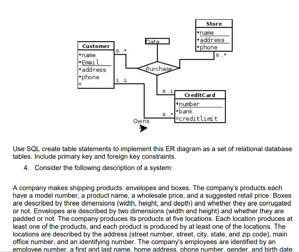 Solved ERD and SQL Purpose The purpose of this ... - Chegg Design your ER Diagram with all entity names, attribute names, primary and foreign keys, relationships, cardinality and participation indicated. You may add entities or attributes as you see fit. You will need to normalise all of your entities, to resolve any many to many relationships.